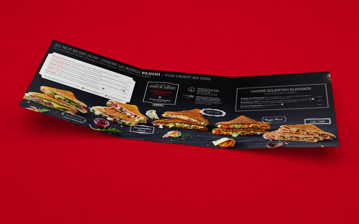 Wir waren als Snack Agentur unterwegs und haben 5 leckere Paninis für die ibis Hotels entwickelt. Mit abgestimmten Rezepten und geringen Wareneinsatz hin zum Genuss. Vorgestellt wurden diverse Konzepte für den schnellen Hunger, die praktikabel sind, einfach in der Zubereitung und vor allem den Gästen schmecken. Heraus kamen lauter Persönlichkeiten wie der „käsige Karl“ oder die „Farmer Frida“. Wir haben neben den neuen Produkten auch die Kommunikation entwickelt und auf eine extrem leckere Inszenierung geachtet. Mit einem Fotoshooting haben wir die Paninis entsprechend in Szene gesetzt und in der Inhouse-Kommunikation beworben.Der Umsatz ging nach oben und den Gästen hat es geschmeckt. So soll es sein.